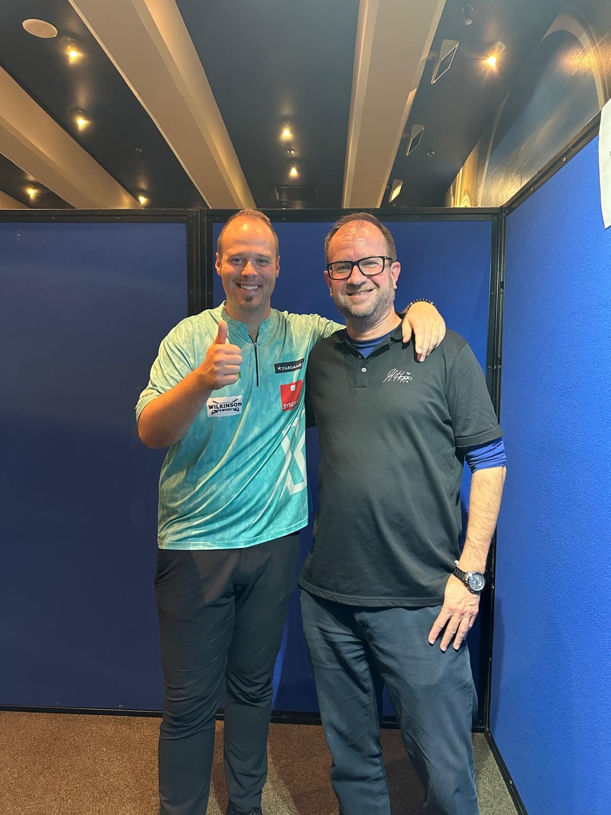 Unser Partner Dr. Joachim Rain mit Max Hopp nach dessen Sieg bei der Darts-WM im Ally Pally in London. Nachdem Max sich nach mehreren Jahren erstmals wieder für die WM qualifizieren konnte, hat er in der 1. Runde den in der Weltrangliste deutlich besser positionierten Engländer Martin Lukeman mit 3-1 geschlagen und trifft am 21.12. auf Luke Woodhouse, Nr. 25 in der Weltrangliste. Wir drücken Max die Daumen!